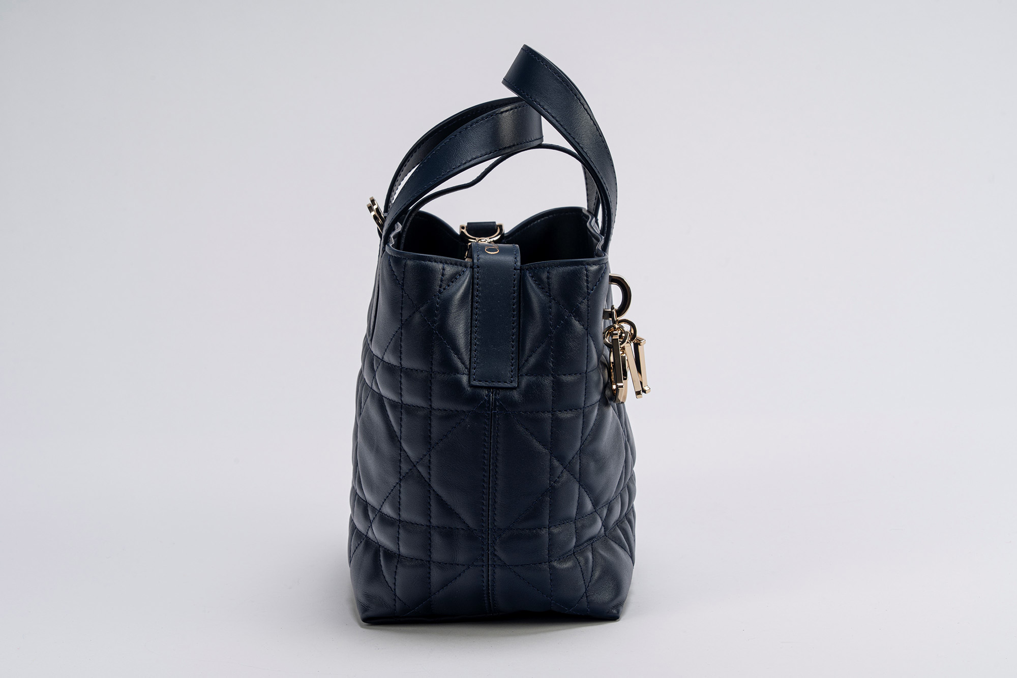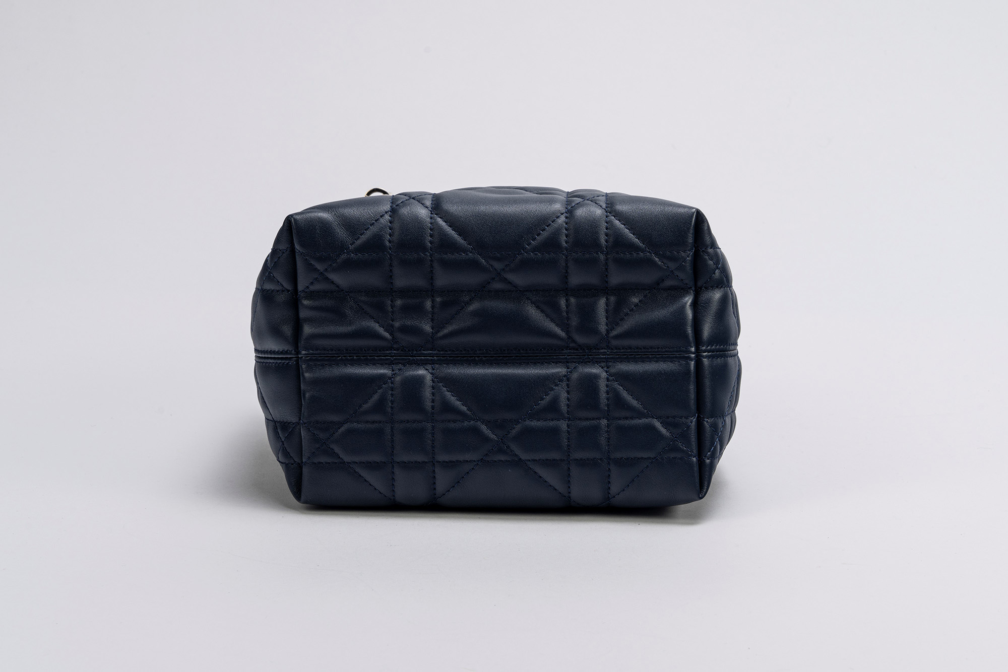 in pelle color blu cannage, tracolla staccabile, dettagli in metallo, cm 17, con sacchettoin pelle color blu cannage, tracolla staccabile, dettagli in metallo, cm 17, con sacchetto