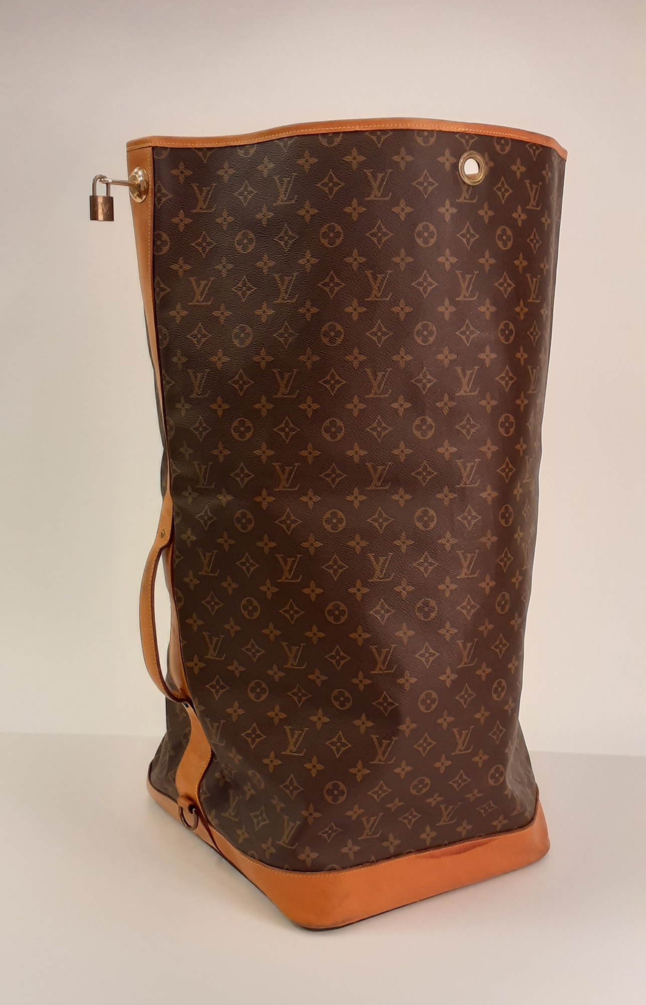 in tela monogram, con manico, dettagli in metallo dorato, cm 29 x 70, (lievi segni d'uso, chiava mancante)in tela monogram, con manico, dettagli in metallo dorato, cm 29 x 70, (lievi segni d'uso, chiava mancante)
