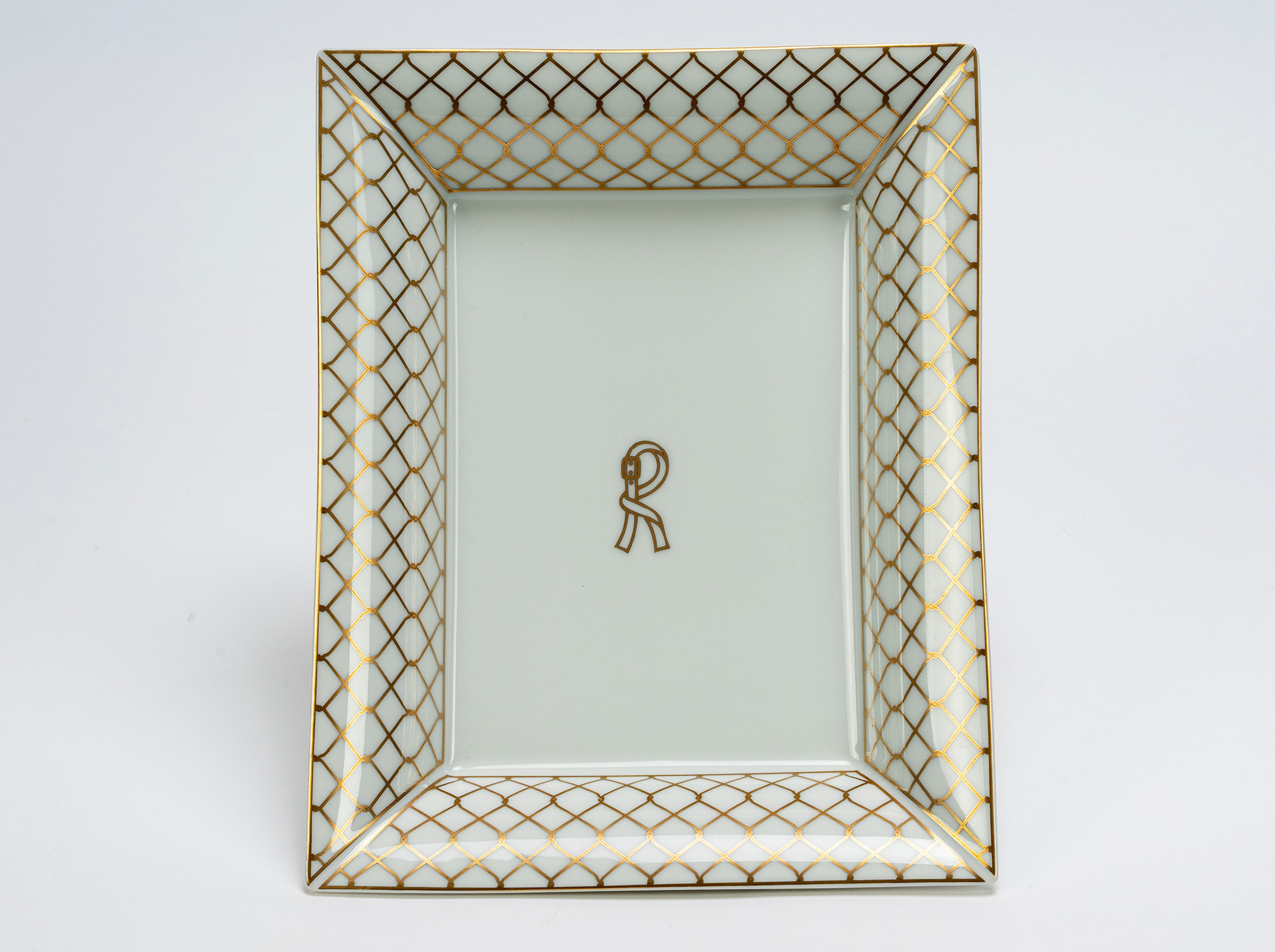 in porcellana bianca, bordo con decoro a rete color oro, cm 20 x 16in porcellana bianca, bordo con decoro a rete color oro, cm 20 x 16
