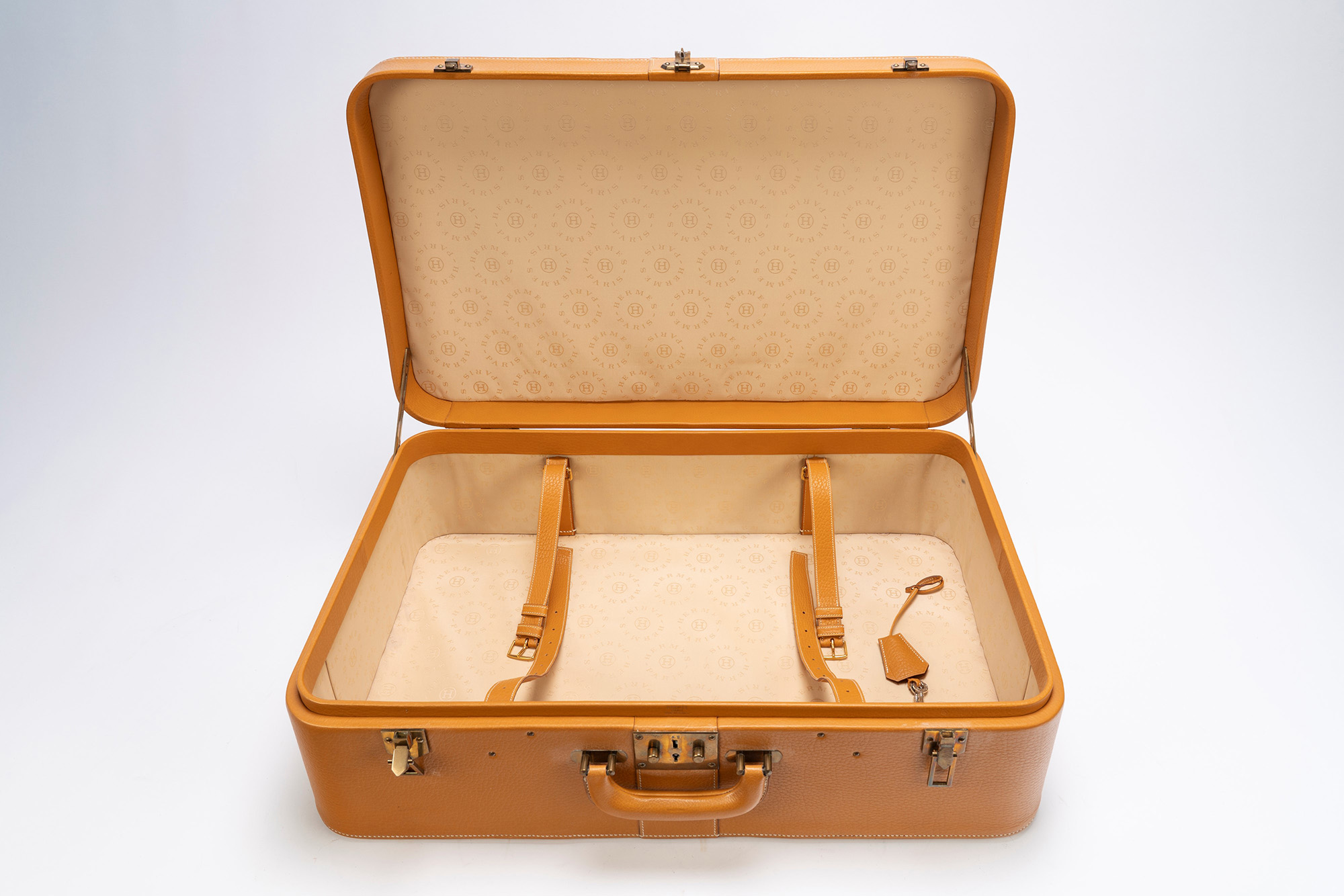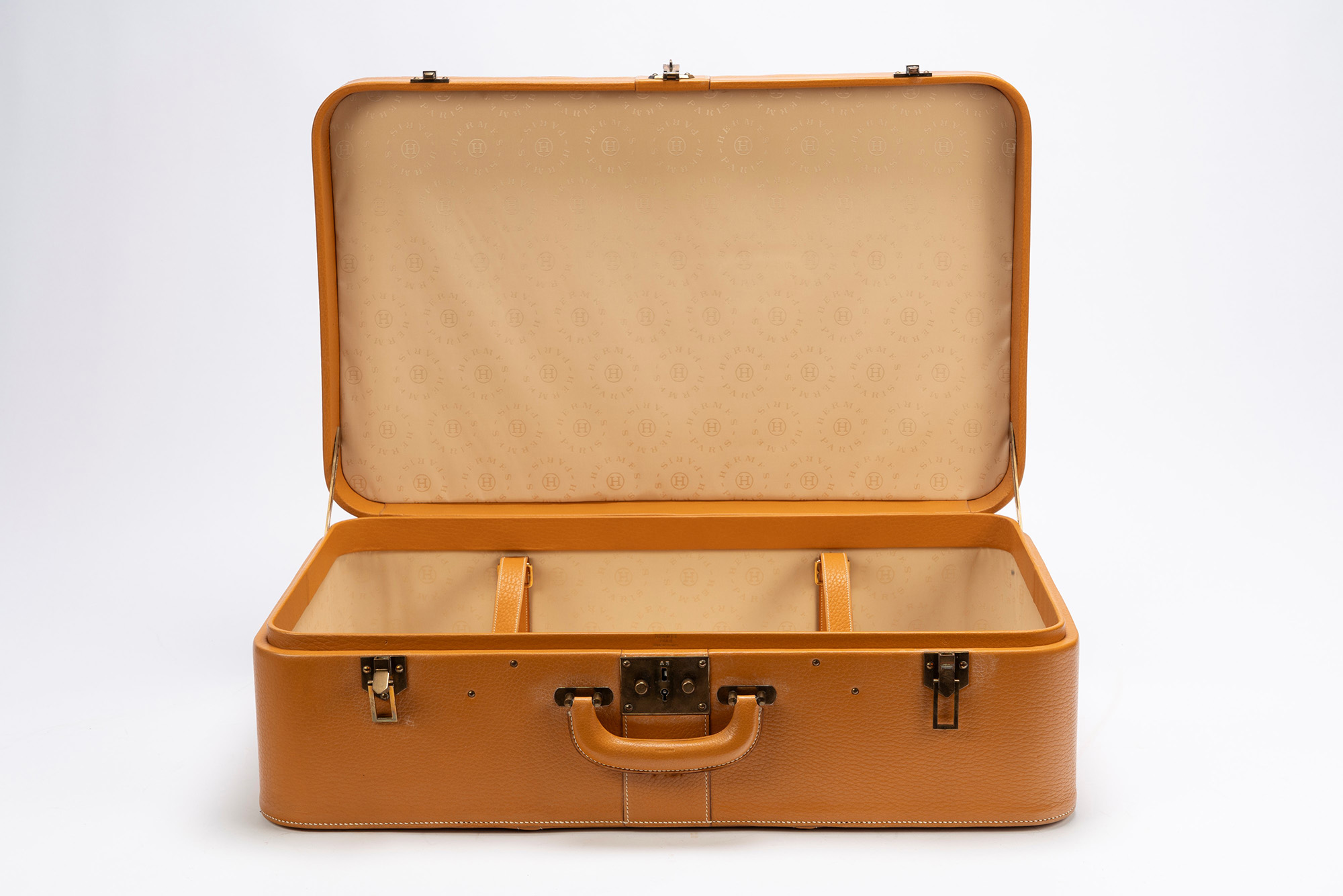 Misure: cm 80 x 22 x 46, cm 65 x 19 x 42 e cm 43 x 14 x 35in pelle, dettagli in ottone, interno rivestito in tessuto logato color miele, valigetta con cartella interna staccabile, iniziali P.S. (segni d'uso)