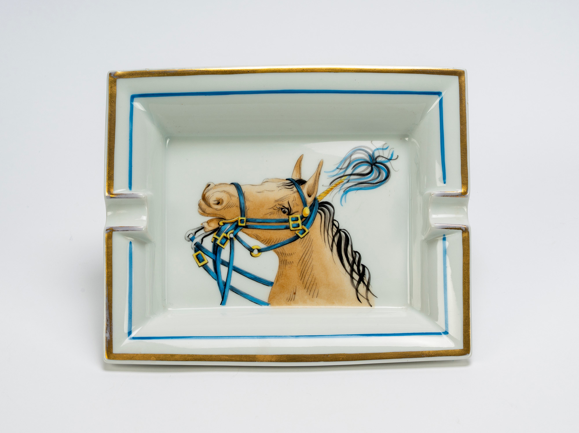 in porcellana bianca, decoro con testa di cavallo, bordo a filetto blu e oro, cm 19,5 x 16,5 (lievi segni d'uso)in porcellana bianca, decoro con testa di cavallo, bordo a filetto blu e oro, cm 19,5 x 16,5 (lievi segni d'uso)