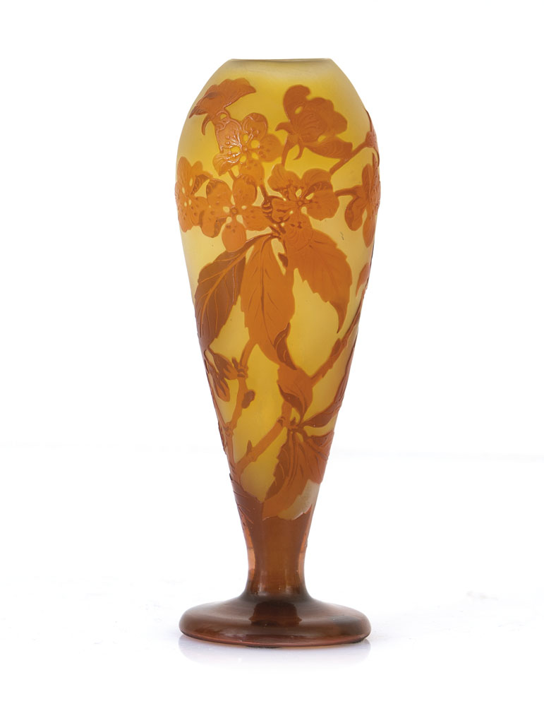GALLE' VASO IN VETRO DOPPIO, GALLE', 1900 CA., a balaustro su base circolare,...