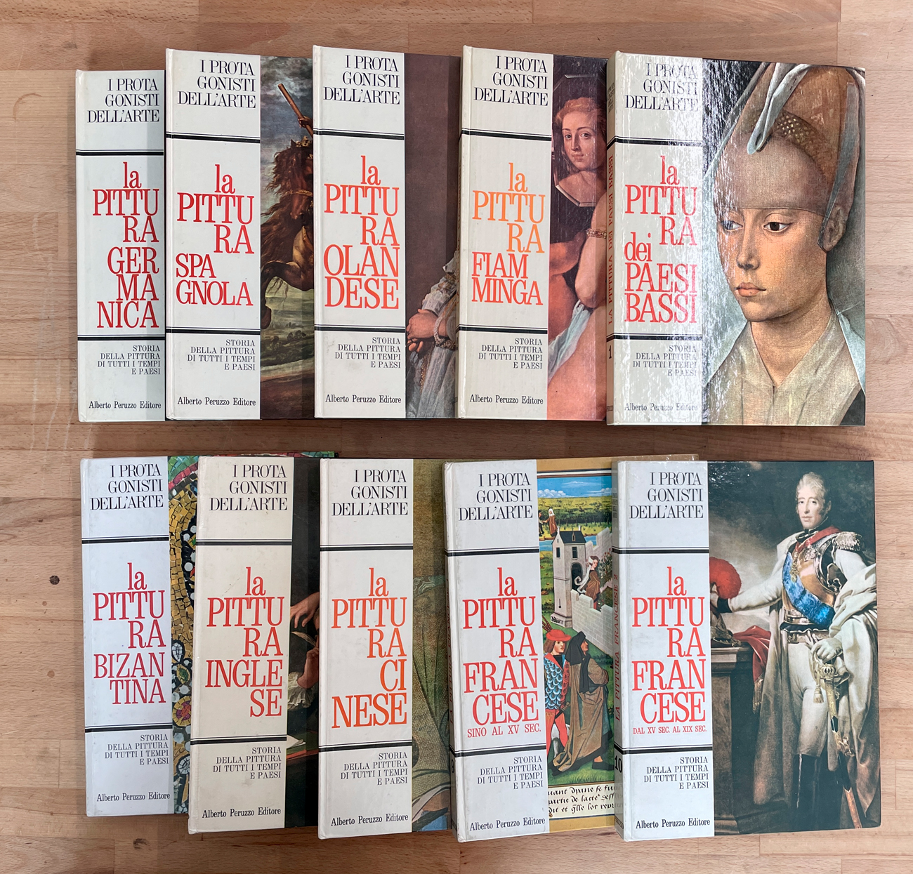 Lotto unico di 10 cataloghi editi per la collana 'I Protagonisti dell'Arte - Storia della Pittura di tutti i paesi', diretto da Ludovico Magugliani