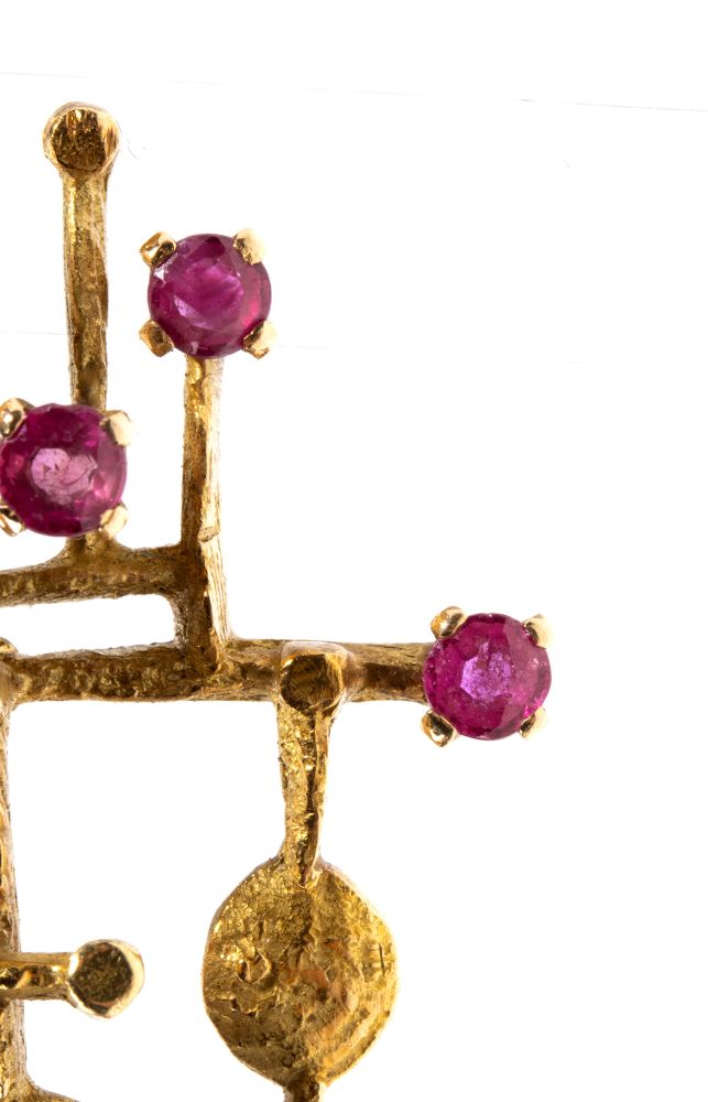 ALBERTO ZUCCHETTA (1938 - ) Spilla in oro con lapislazzuli e rubini 1971