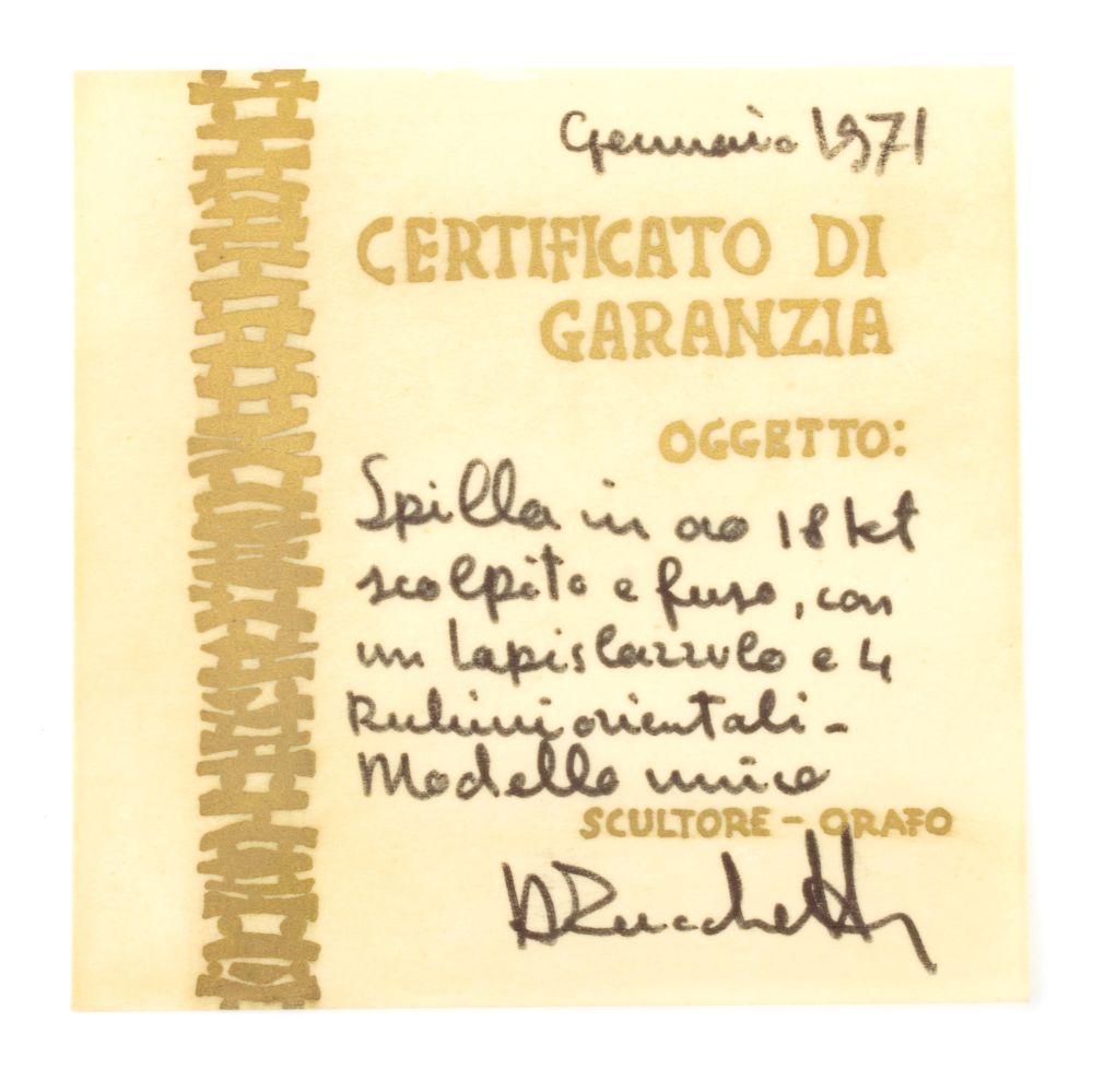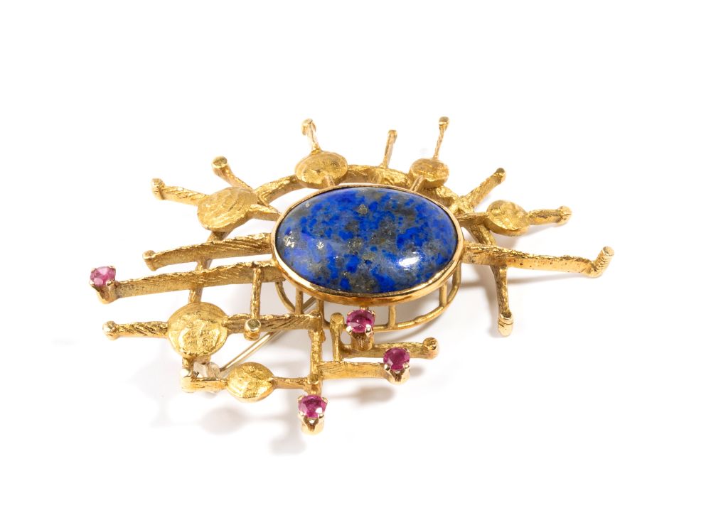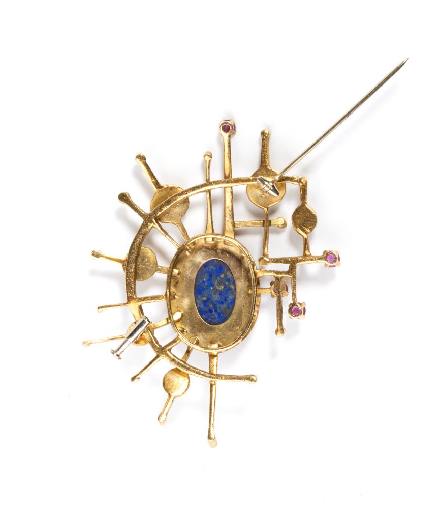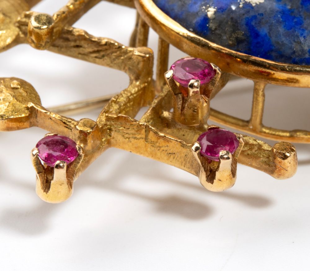 Spilla in oro con lapislazzuli e rubini 1971