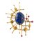 in oro giallo, di forma astrale, impreziosito da un cabochon centrale di lapislazzuli e n. 04 rubini di forma rotonda, taglio composito, circa 0.80 ct, come misurati con montatura.