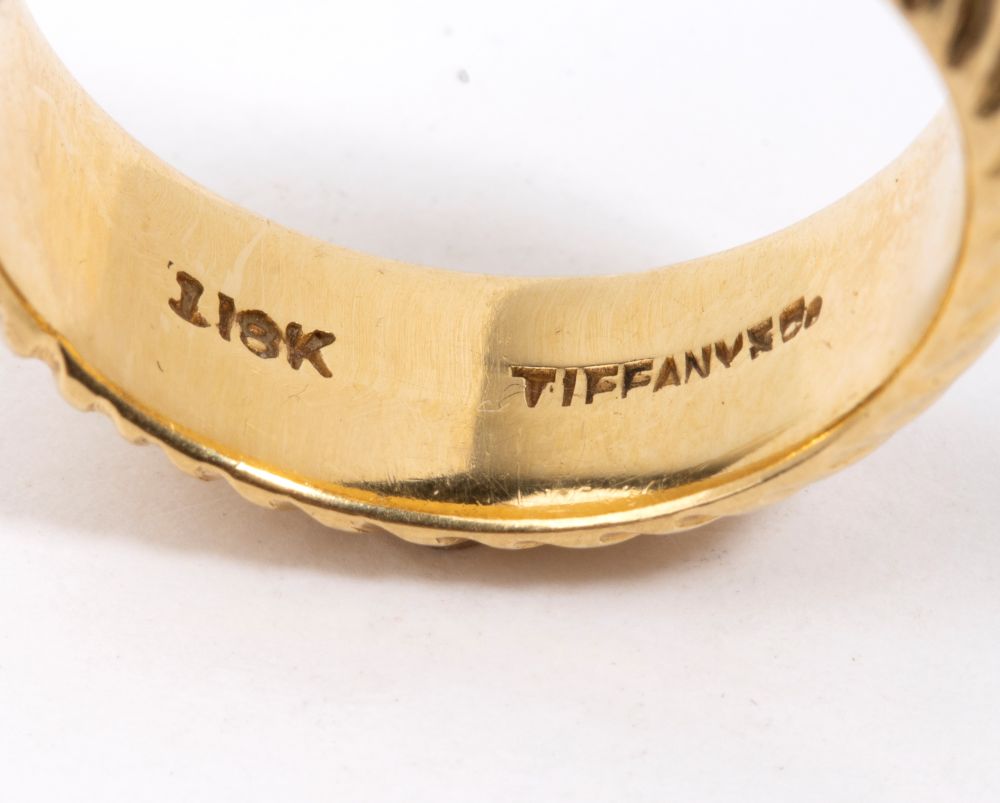 in oro giallo 18k, con superficie lavorata incisa a spirale. Firmato TIFFANY.