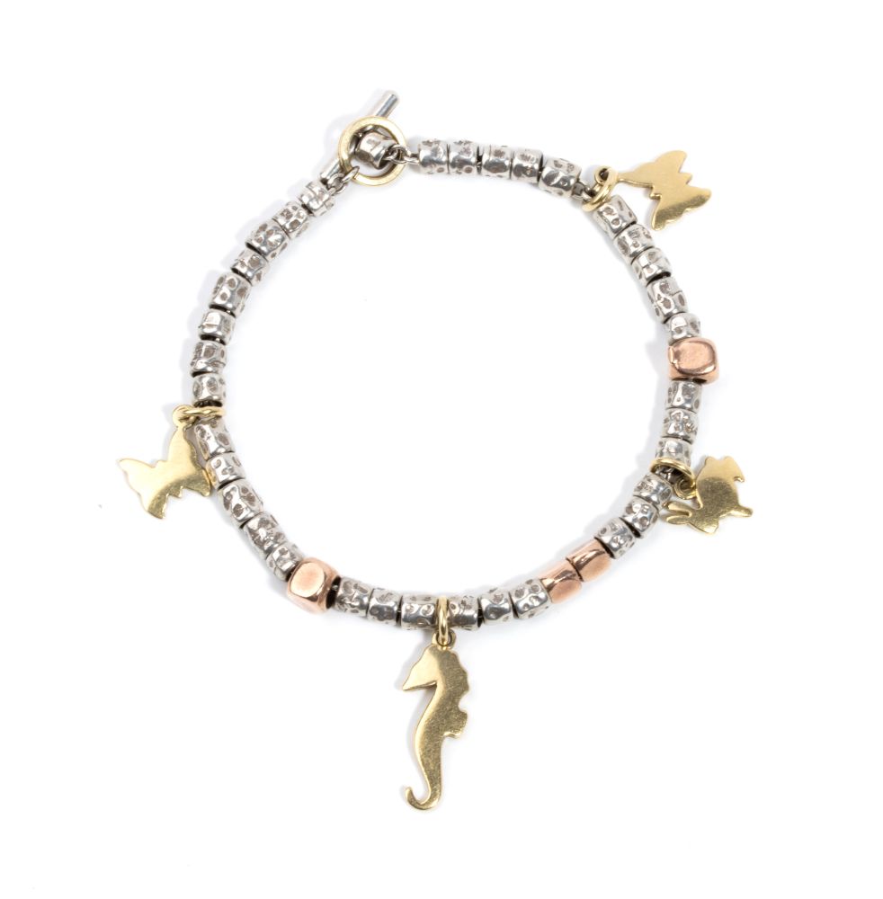 Bracciale con pepite in argento ed oro rosa, pendenti in oro