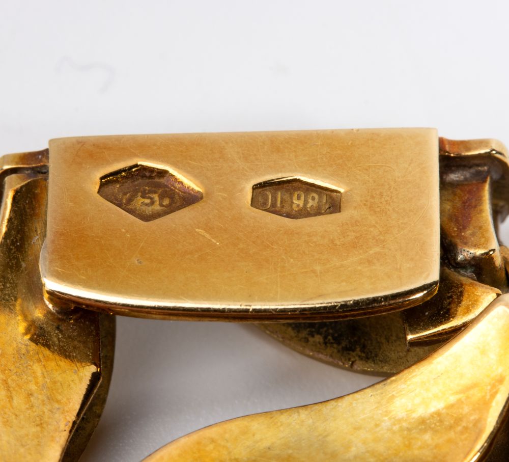Punzonato "750 - 186 TO".  Dimensioni: 20.5 x 2.5 cm. Peso: 78.7 gr.