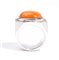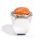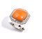 di forma geometrica, in oro bianco 18k, impreziosito con diamanti di forma rotonda, taglio brillante, circa 0.20 ct, e un cabochon centrale di corallo Mediterraneo (Corallum Rubrum).