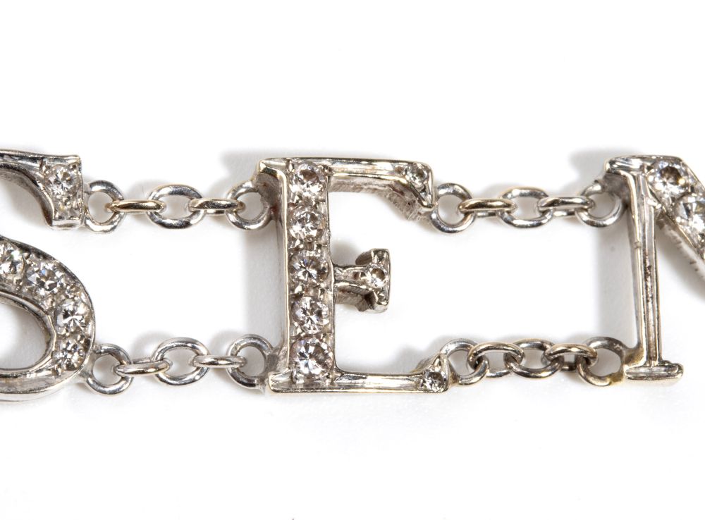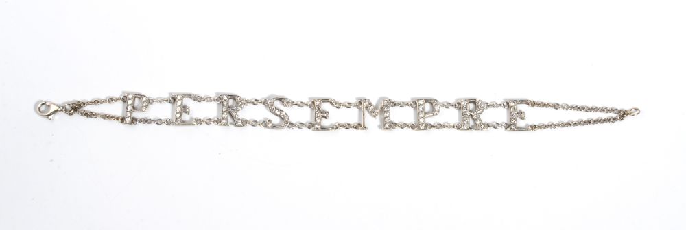in oro bianco 18k, con catena a maglia forzatina interrotta da lettere che compongono la frase "PER SEMPRE", impreziosita da diamanti di forma rotonda, taglio brillante, circa 1.00 ct, come misurati con montatura.