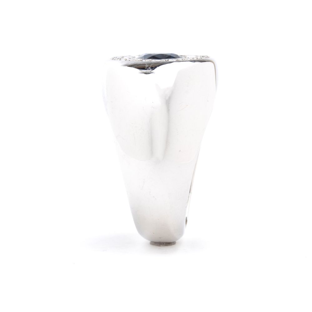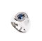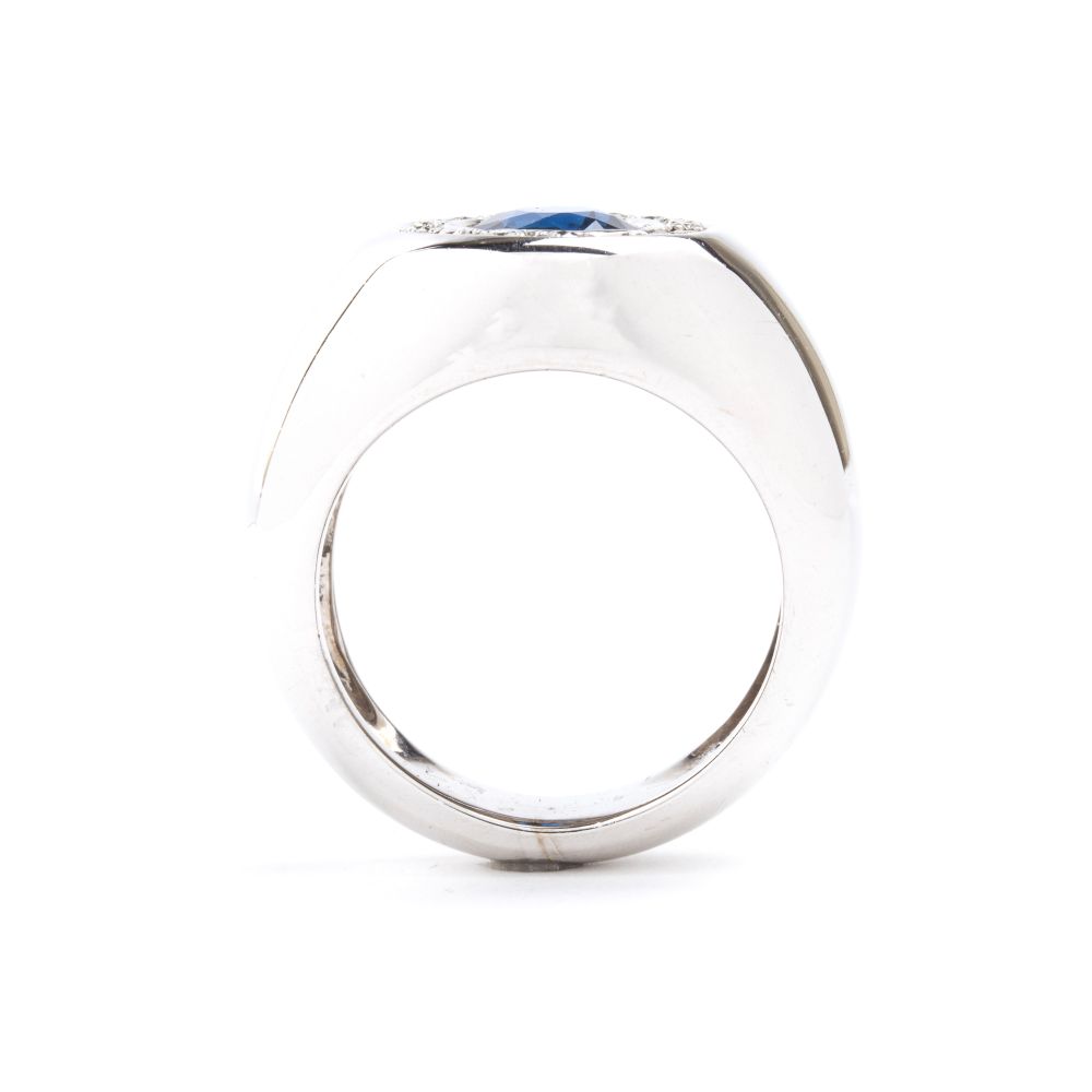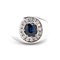 in oro bianco 18k, incastonato con zaffiro incorniciato da diamanti.