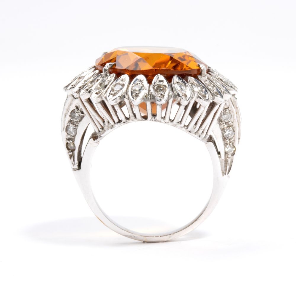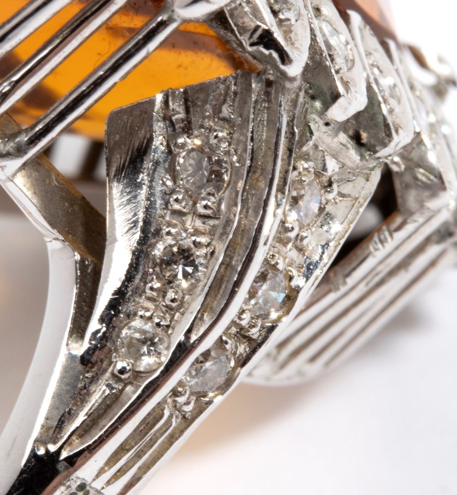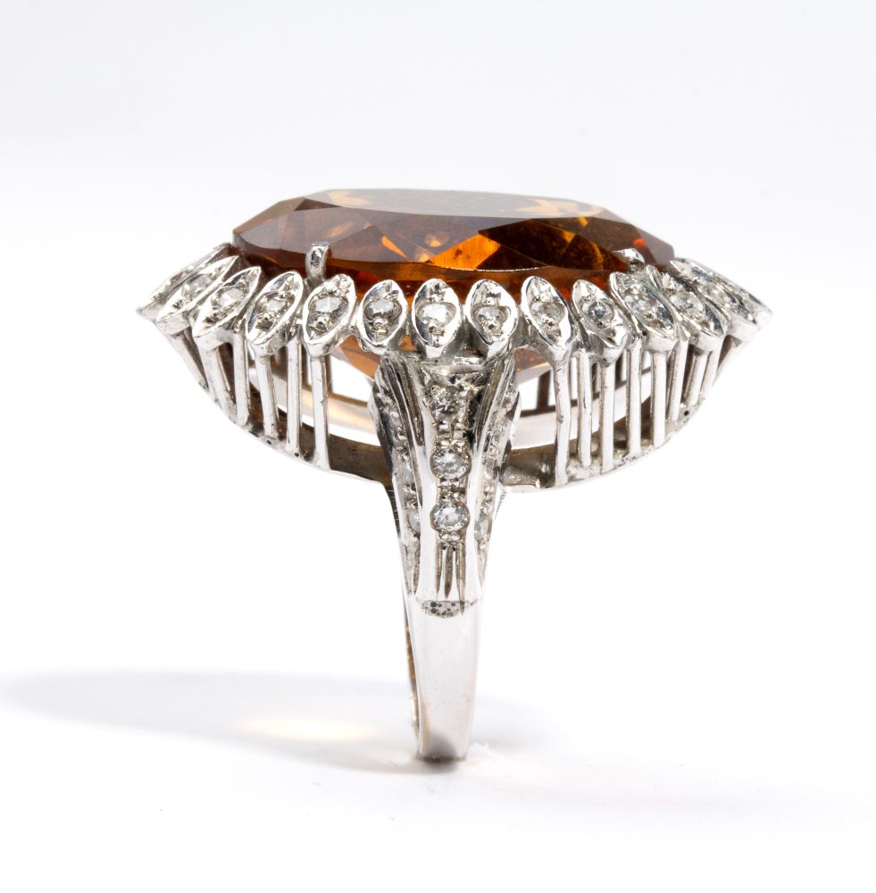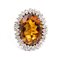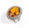 a forma di fiore, con un quarzo citrino centrale, contornato da petali in diamanti di forma rotonda, taglio brillante, stimati per un peso totale di circa 1.00 ct, colore H, purezza VS-SI.