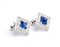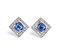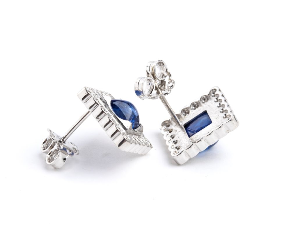 in oro bianco 18k, di forma geometrica, ciascuno incastonato con zaffiro ovale incorniciato da diamanti.