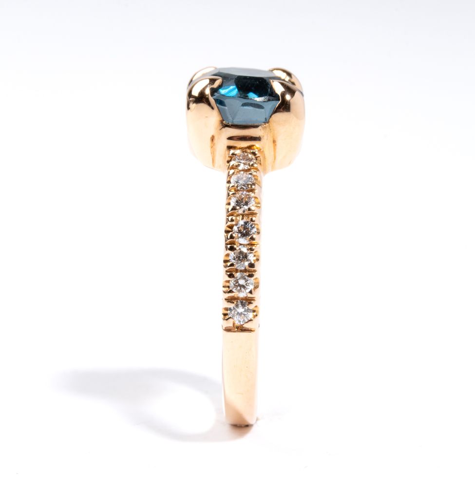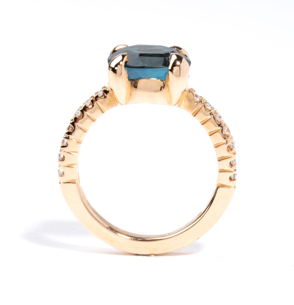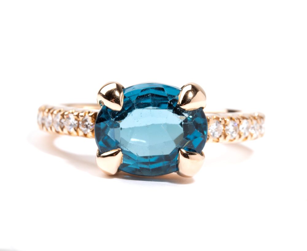 Anello in oro con topazio blu e diamanti
