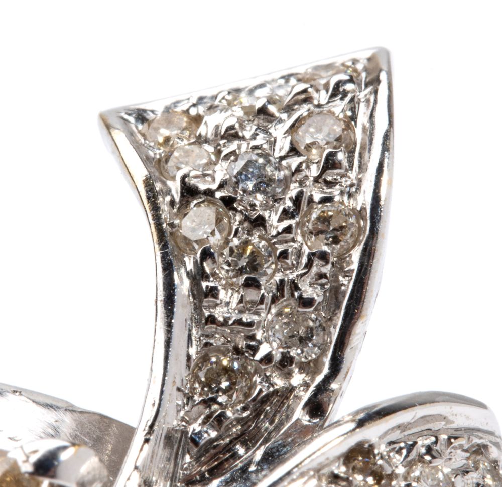 in oro bianco, con perla Australiana sormontata da motivo di nastro in diamanti.