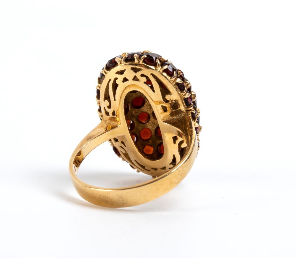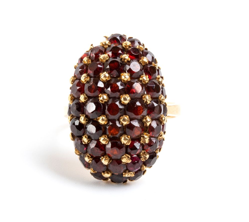 Anello con smeraldo: Misura ITA 13 - Misura USA 6 ½. Anello con granati: Misura ITA 16 - Misura USA 7 ½.