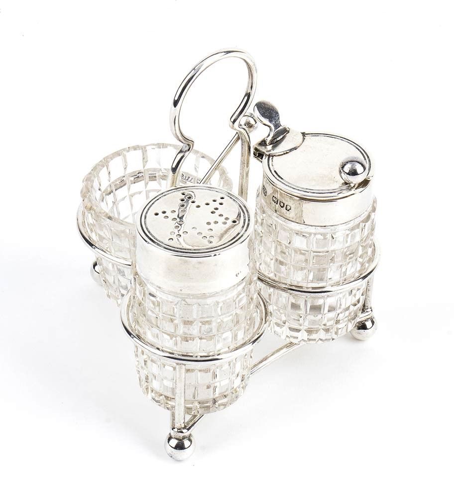 Hukin & Heath, John Thomas Heath & John Hartswore Middleton Cruet edoardiana inglese in argento Londra, 1901-1902 Altezza x lato: 10 x 8,4 cm. Peso totale: 227 gr