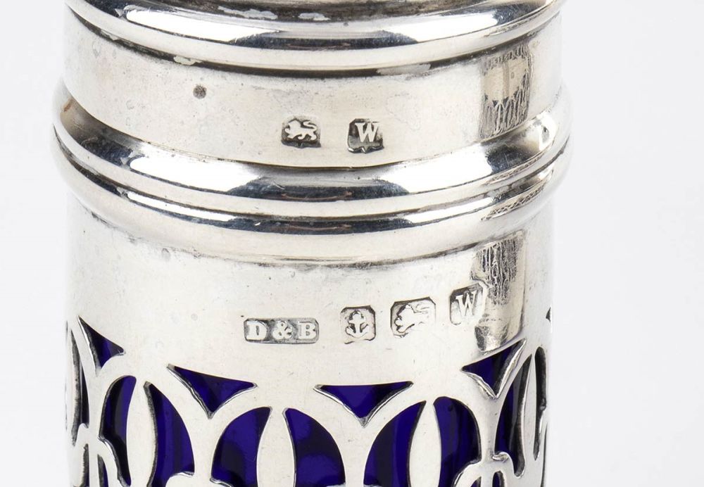 Argento 925/1000, serie completa di marchi Birmingham 1921-1922, argentieri Docker & Burn.