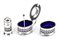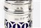 con bordo traforato a decori geometrici e contenitori in vetro blu.