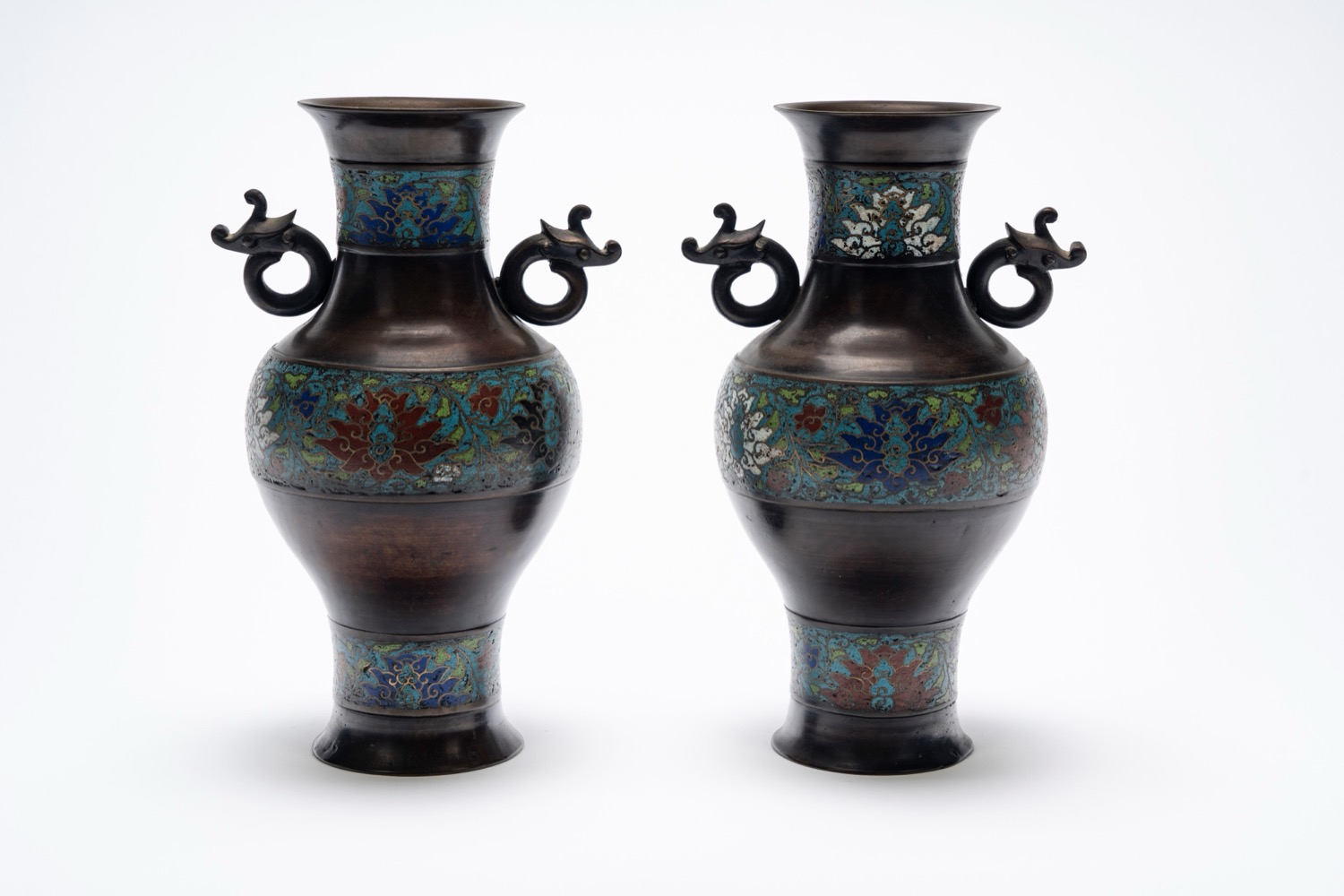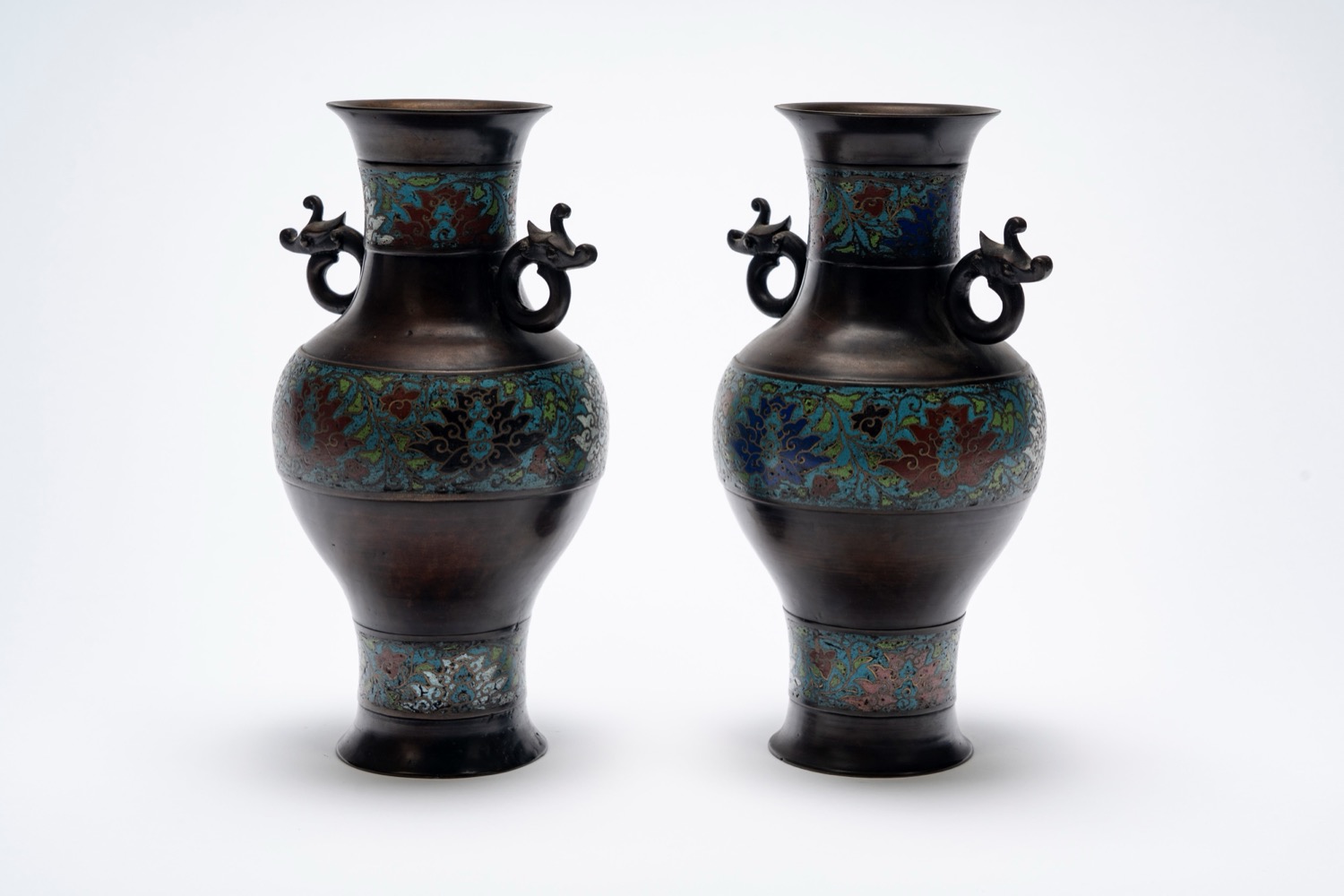 Coppia di vasi a balaustro in bronzo e smalti cloisonné Cina, fine XIX secolo / inizi XX secolo