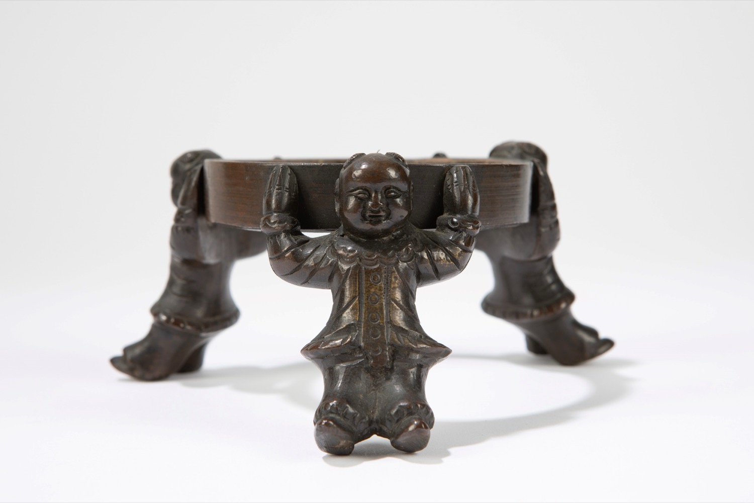 di forma ovoidale, le anse a guisa di mostro marino, su antiche basi in bronzo sorrette da tre bambini (difetti)