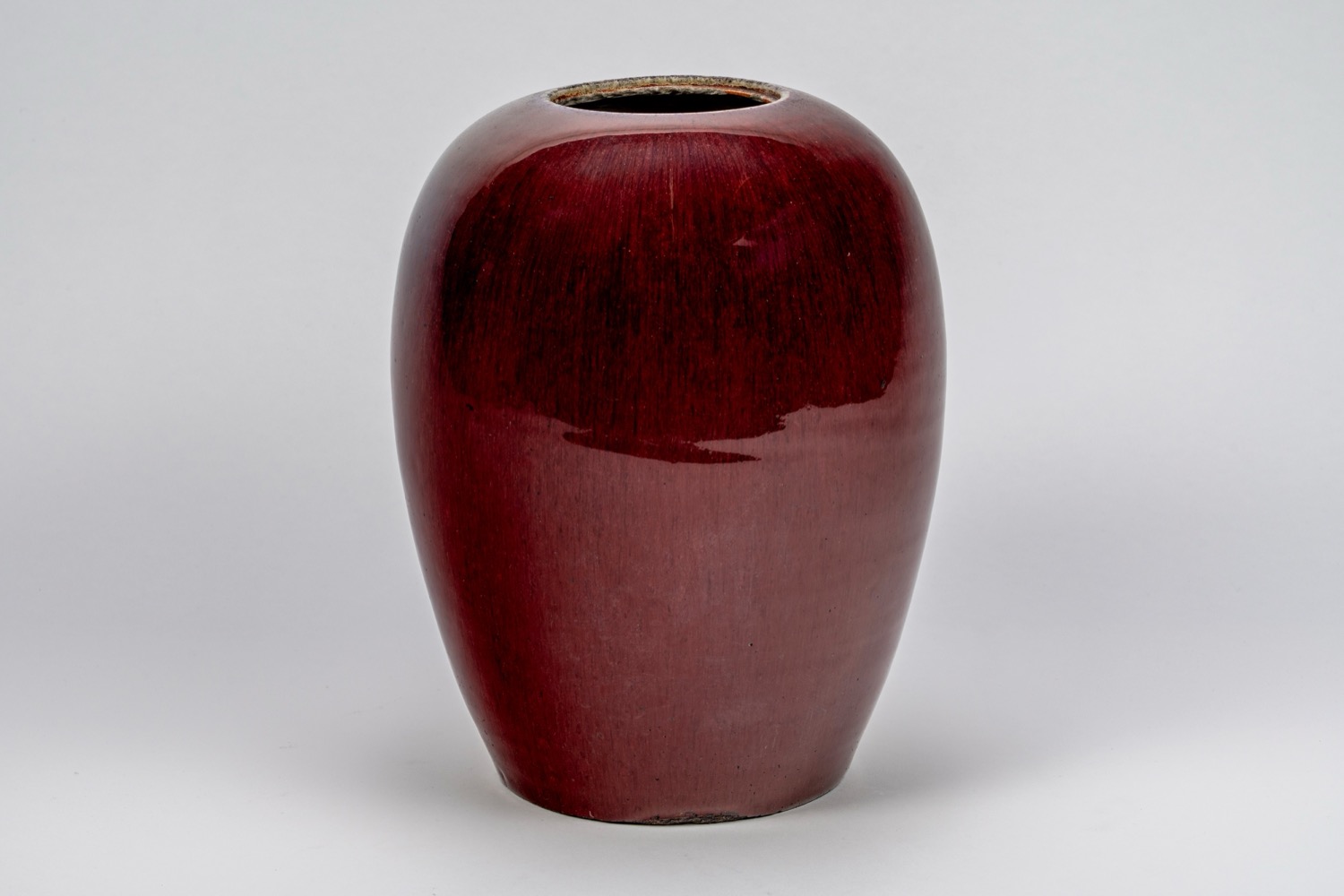 Vaso in porcellana ovoidale monocromo rosso flambé, Cina, dinastia Qing, periodo Daoguang
