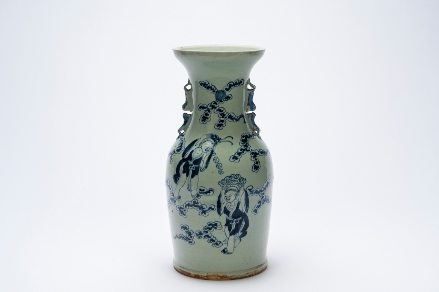 Lot 75 | Vaso in porcellana bianco‑blu con figure, sfondo celadon, Cina, XX secolo