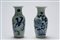Due vasi in porcellana bianco-blu, sfondo celadon, Cina, XX secolo