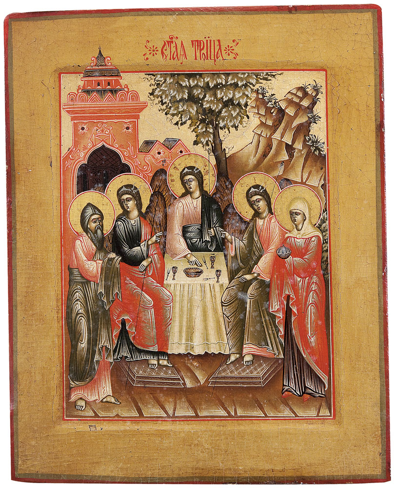 ICONA RUSSA DEL XIX SECOLO La mensa di AbramoTempera all'uovo su tavola, cm...