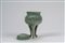 龙泉绍兴青瓷,三足器,中国,二十一世纪con coperchio forato e base in legno, marchio a sigillo impresso.