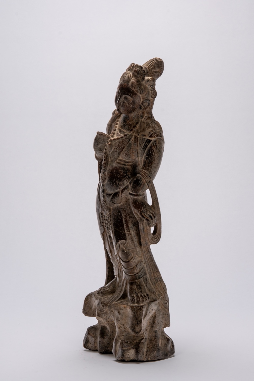 Lot 84 | Figura scolpita in pietra raffigurante bodhisattva Guanyin in stile tardo Tang/Song, Cina