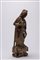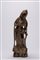 leggermente flessa verso sinistra, in posa elegante con il peso sulla gamba destra, avvolta da lunga veste aderente e mantello, con ricco motivo di collane, cinture e monili resi da fitte incisioni. I piedi nudi poggiano su una base rocciosa irregolare, il braccio destro è piegato al petto a reggere un attributo ormai consunto, il sinistro scende lungo il fianco e trattiene un lembo del drappo. Il volto, dal mento pieno e dagli occhi a mandorla, è incorniciato da una complessa acconciatura a chignon alto.