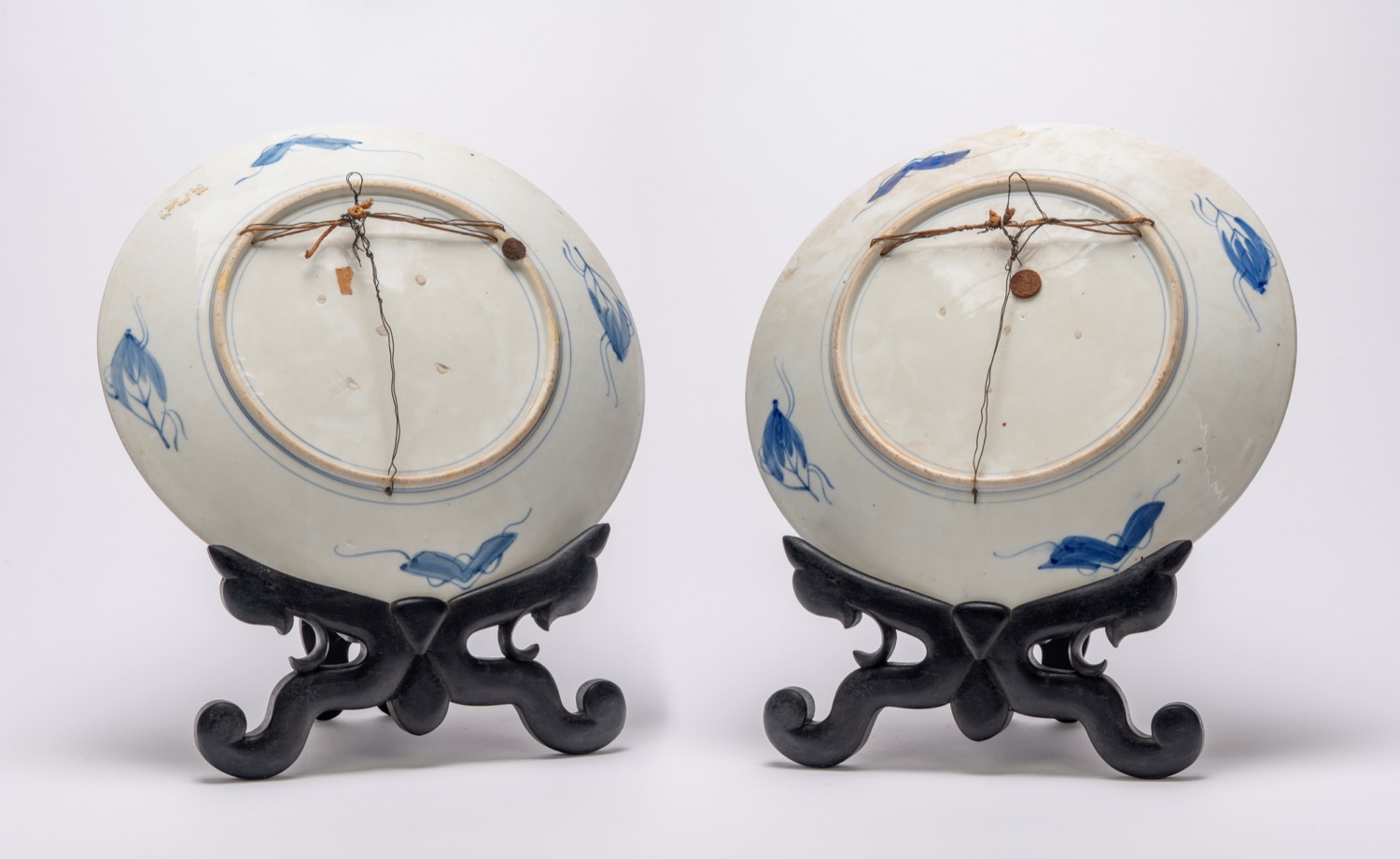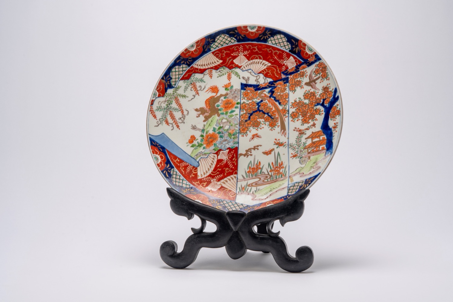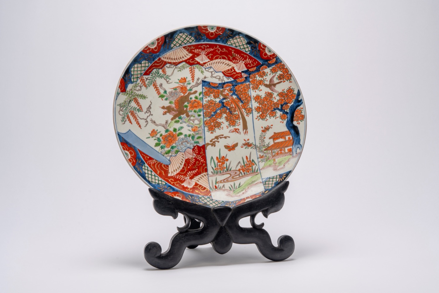 Lot 104 | Coppia di piatti da parata Imari, dipinti in policromia nei tipici colori blu cobalto sotto smalto, iron-red e accenti dorati su fondo bianco, Giappone, periodo Meiji, fine XIX secolo