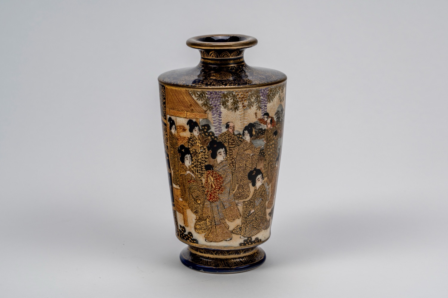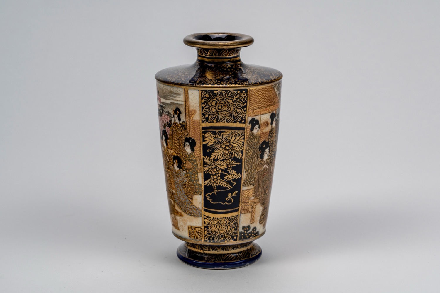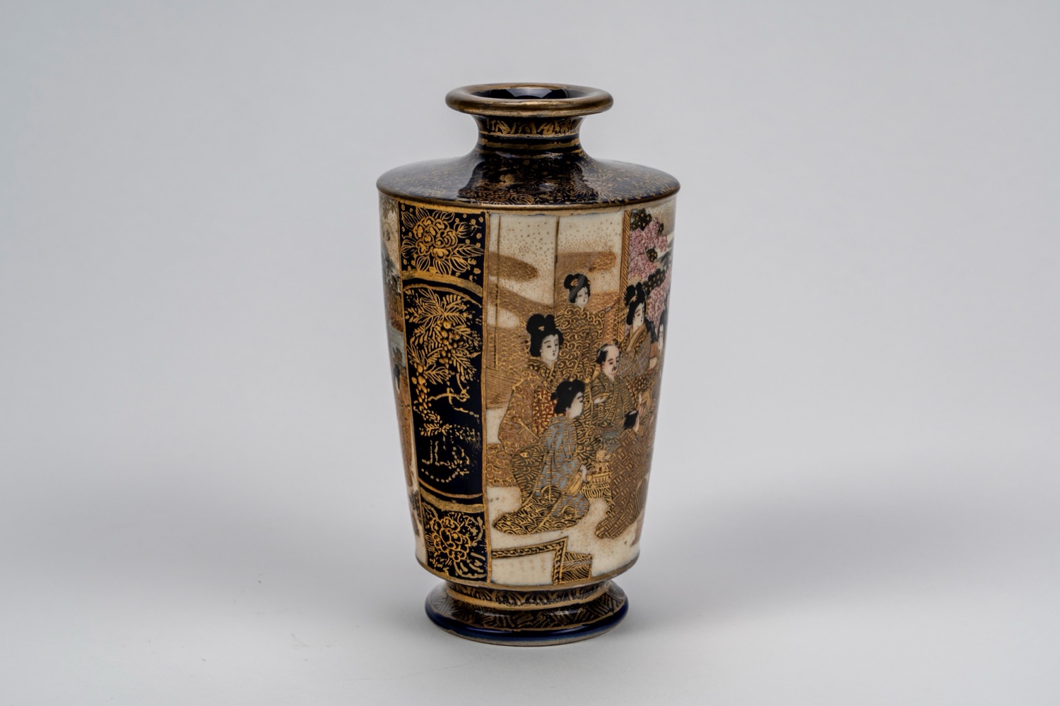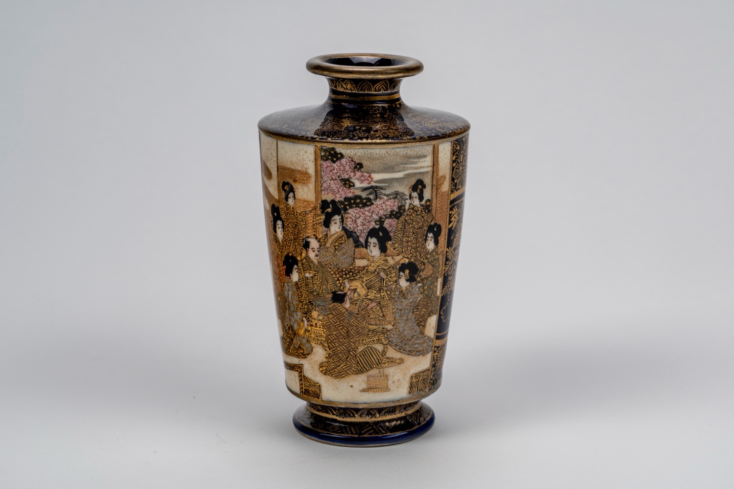 Lot 106 | Piccolo vaso Satsuma a fondo blu con geishe, Giappone, periodo Meiji
