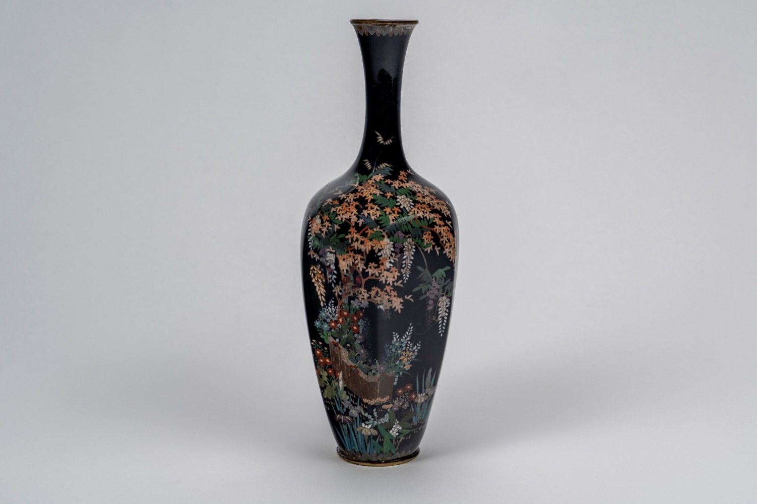 Elegante vaso cloisonné a collo lungo, firmato Ito, Giappone, periodo Meiji, 1870-1890