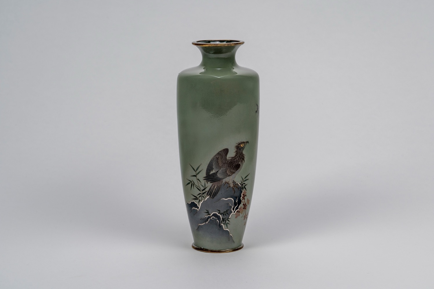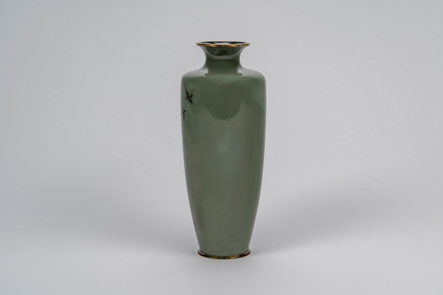 Vaso cloisonné a fondo grigio-verde, Giappone, periodo Meiji, 1879-1890