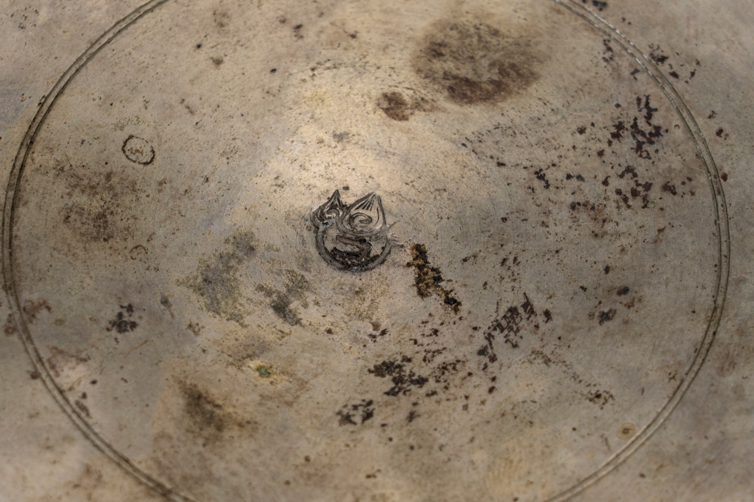 forma ad anfora allungata con spalla arrotondata, collo corto leggermente rastremato e bocca svasata con bordo in metallo brunito, su sottile piede ad anello. Sul fondo blu cobalto profondo una composizione floreale asimmetrica con crisantemi a petali filiformi; marchio impresso alla baseforma ad anfora allungata con spalla arrotondata, collo corto leggermente rastremato e bocca svasata con bordo in metallo brunito, su sottile piede ad anello. Sul fondo blu cobalto profondo una composizione floreale asimmetrica con crisantemi a petali filiformi; marchio impresso alla base