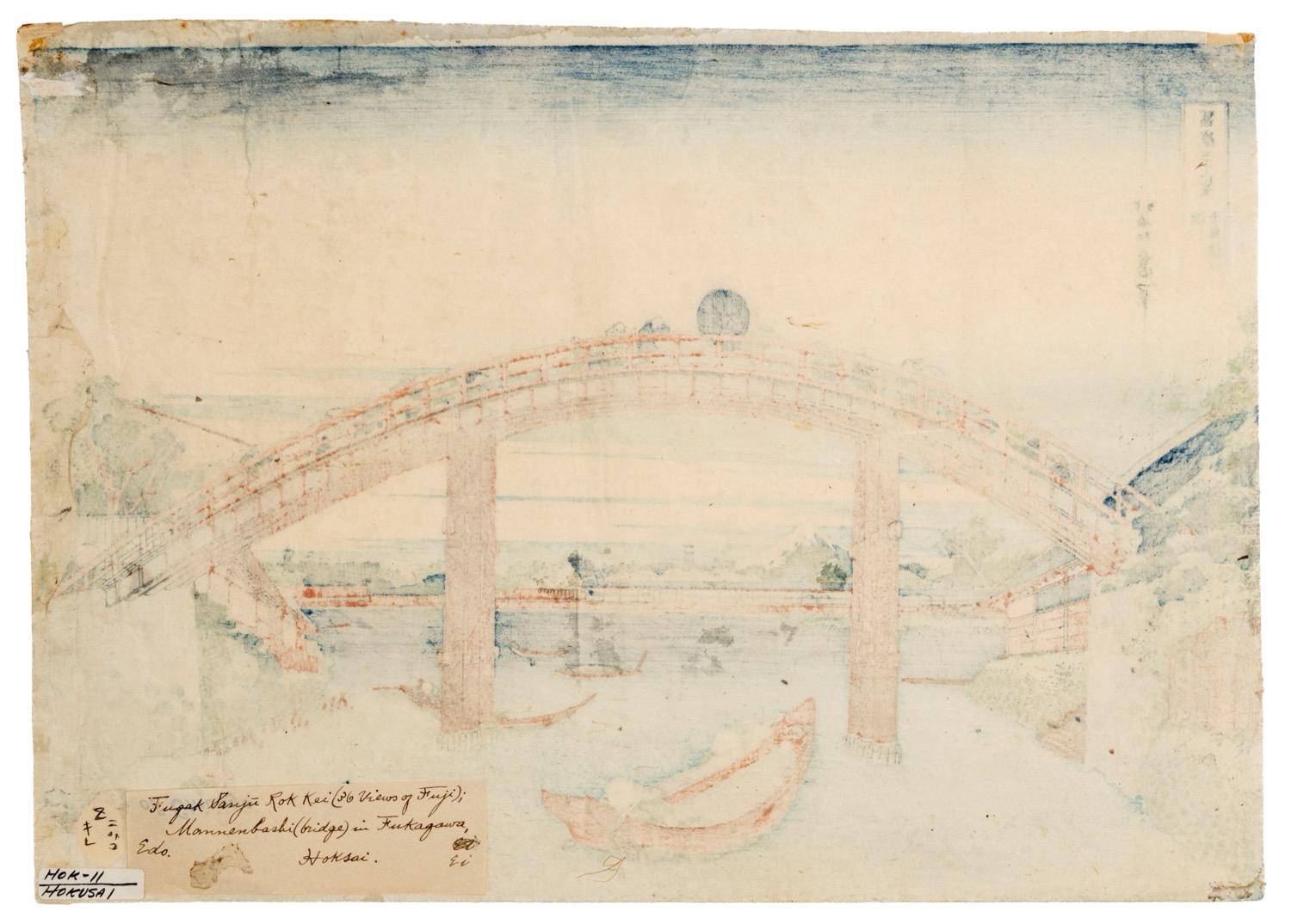 Katsushita Hokusai (Giappone 1760 - Giappone 1849) - Sotto il Ponte Mannen a Fukugawa (Fukagawa Mannenbashi no shita); blue outline, c.1830/32