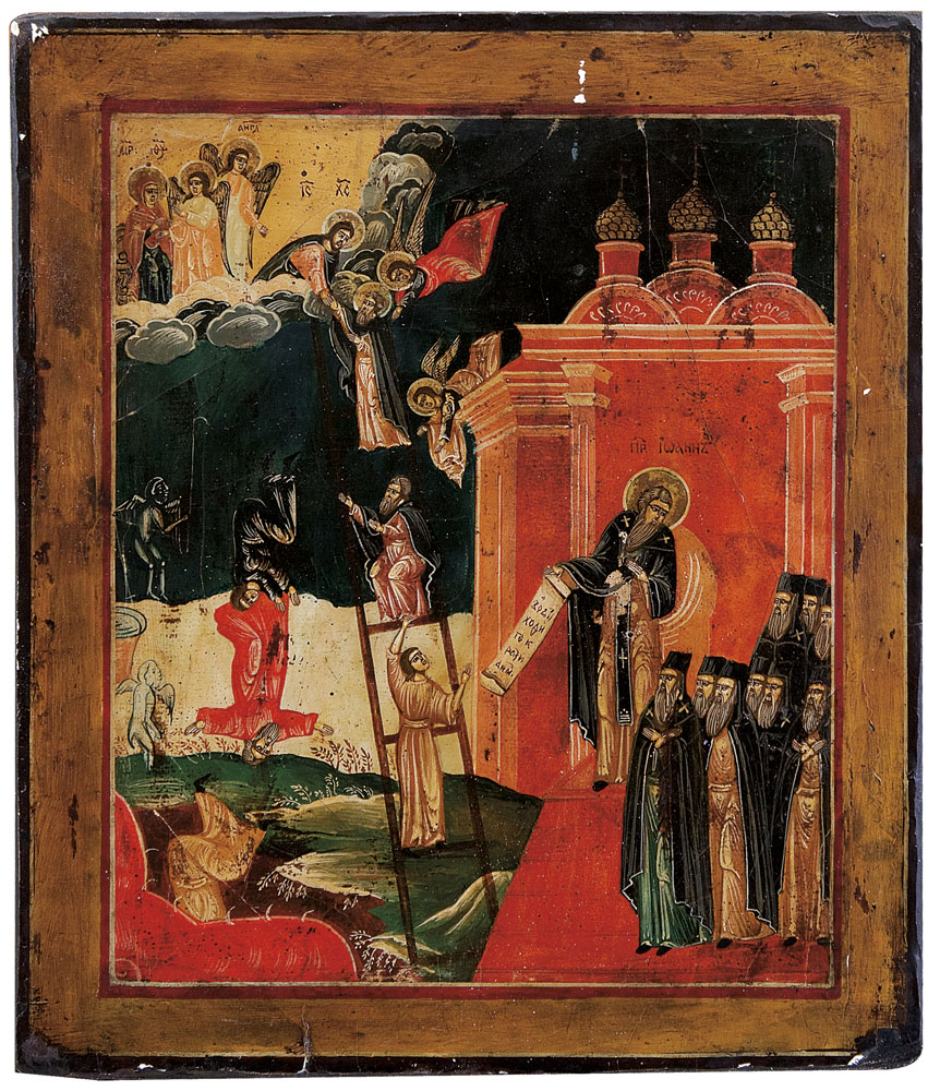 ICONA RUSSA DEL XIX SECOLO San Giovanni Climaco della scalaTempera all'uovo...