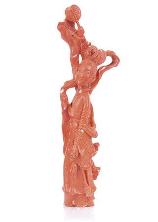 ARTE ORIENTALE FIGURA IN CORALLO, CINA, XX SECOLO, raffigurante ragazza con...