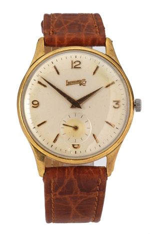 EBERHARD Fuori misura anni '50 Diametro 38 mm Cassa laminata in oro in tre corpi, quadrante guilloché con indici applicati, movimento a carica manuale. Out of size only time 50's