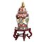 Grande potiche in porcellana decorata e dipinta a motivo vegetale e floreale, base in legno.