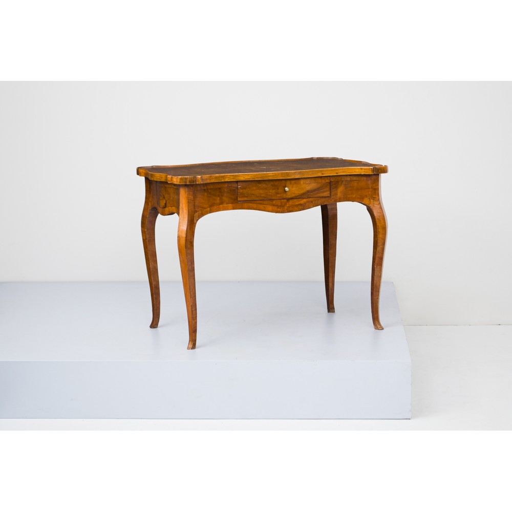 Scrittoio da centro di epoca Luigi XV con cassetto centrale in legno di rovere lastronato in legno di noce.