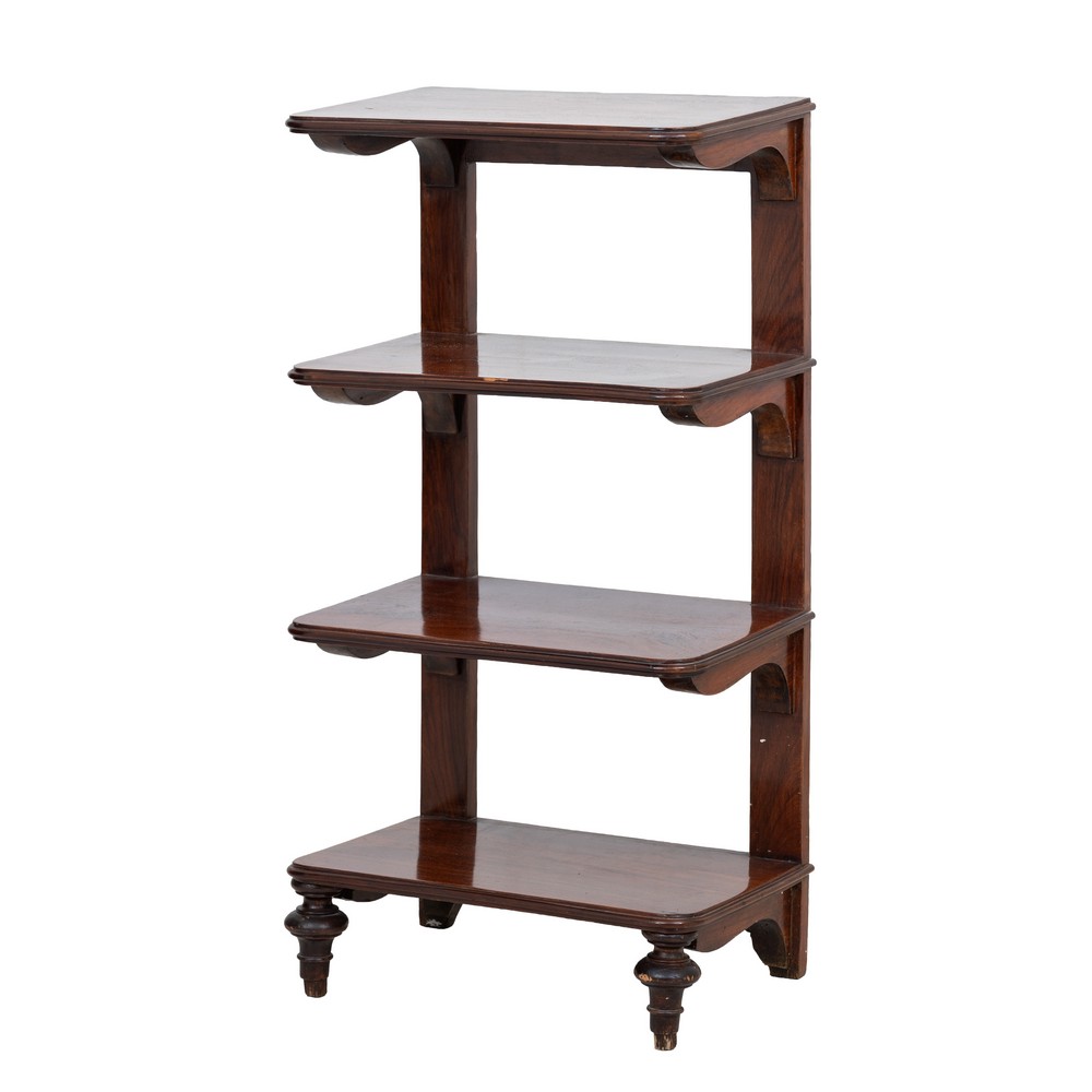 Piccolo etagere a quattro ripiani in legno di mogano.