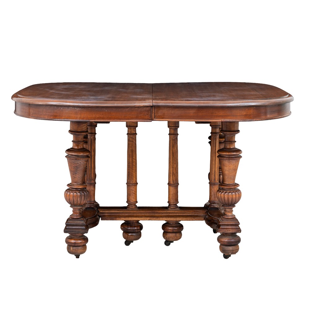 Tavolo allungabile Enrico II in legno di noce (due allunghi).