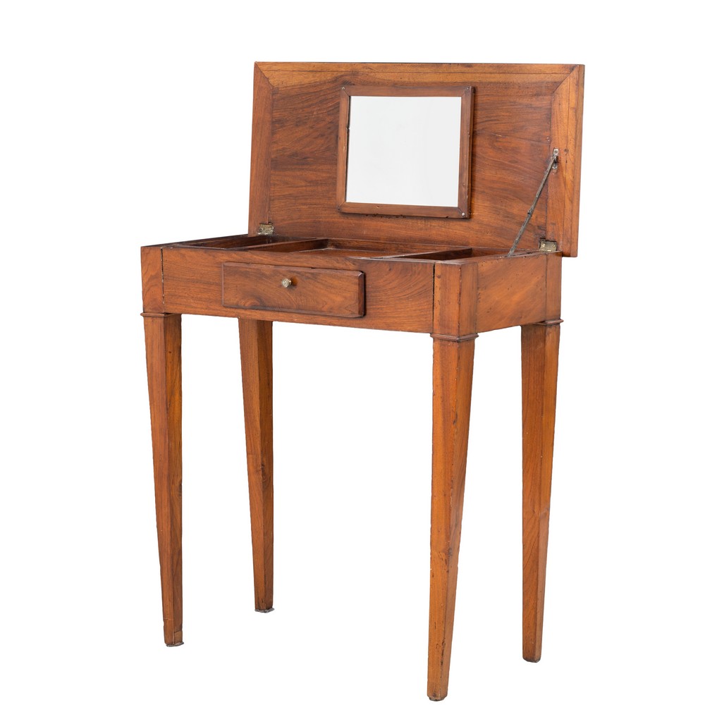 Console/toletta Luigi XVI con cassetto centrale in legno di noce.