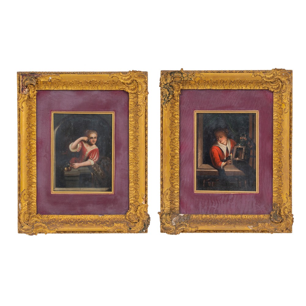 PITTORE OLANDESE PRIMA METÀ XIX SEC., Coppia oli su tavoletta