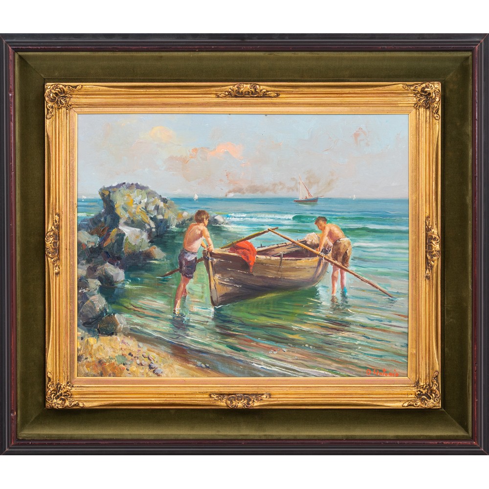 Bel dipinto del pittore napoletano Antonio Panza, figlio di Giovanni Panza (1894-1989) che per distinguere le sue opere da quelle del padre (peraltro molto simili nella qualità) si firmava col cognome della madre.