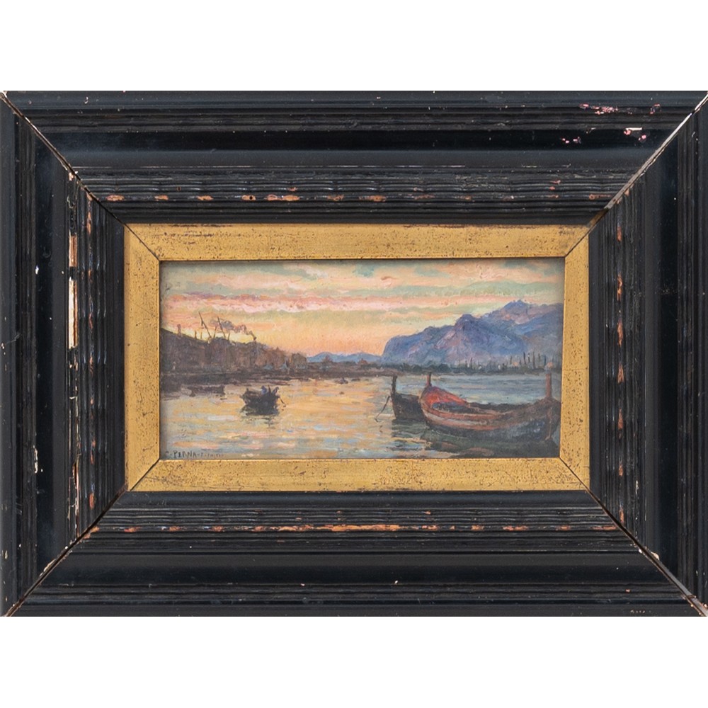 Marina con barche e pescatori, veduta del golfo di Palermo